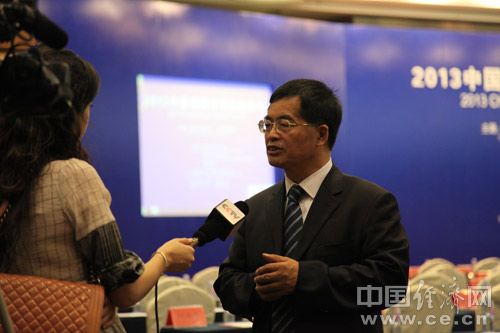 由中國(guó)道路交通安全協(xié)會(huì)、中國(guó)汽車技術(shù)研究中心和中國(guó)經(jīng)濟(jì)網(wǎng)共同主辦的“2013中國(guó)道路交通安全論壇”于8月29日在北京首都大酒店舉行。圖為清華大學(xué)交通研究所所長(zhǎng)陸化普接受央視記者采訪。中國(guó)經(jīng)濟(jì)網(wǎng) 裴小閣 攝影