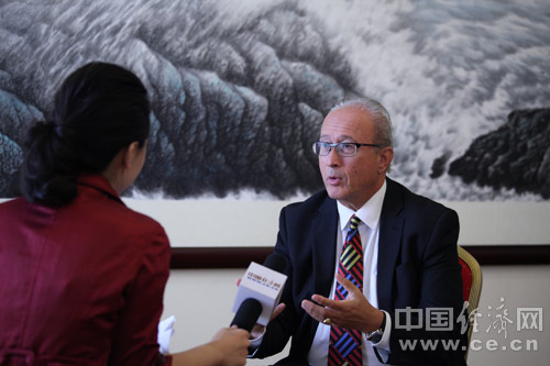 由中國(guó)道路交通安全協(xié)會(huì)、中國(guó)汽車技術(shù)研究中心和中國(guó)經(jīng)濟(jì)網(wǎng)共同主辦的“2013中國(guó)道路交通安全論壇”于8月30日在北京首都大酒店舉行。圖為國(guó)際道路交通安全協(xié)會(huì)主席高斯接受中國(guó)經(jīng)濟(jì)網(wǎng)記者采訪。中國(guó)經(jīng)濟(jì)網(wǎng) 裴小閣/攝