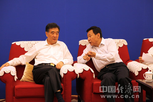 6月17日,以“社會(huì)共治、同心攜手維護(hù)食品安全”為主題的2013年全國食品安全宣傳周主場活動(dòng)在北京舉行。國務(wù)院副總理汪洋出席活動(dòng)并講話。圖為國務(wù)院副總理汪洋與國家食品藥品監(jiān)督管理總局局長張勇交流。 中國經(jīng)濟(jì)網(wǎng) 王耀峰/攝