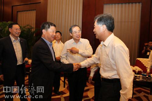 國務(wù)院副總理汪洋和中糧集團(tuán)董事長寧高寧交流