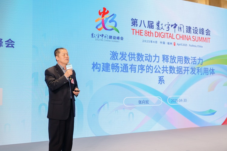 國(guó)家數(shù)據(jù)專家咨詢委員會(huì)委員、北京交通大學(xué)信息管理理論與技術(shù)國(guó)際研究中心教授張向宏作“激發(fā)供數(shù)動(dòng)力,釋放用數(shù)活力,構(gòu)建暢通有序的公共數(shù)據(jù)資源開發(fā)體系”主旨演講。