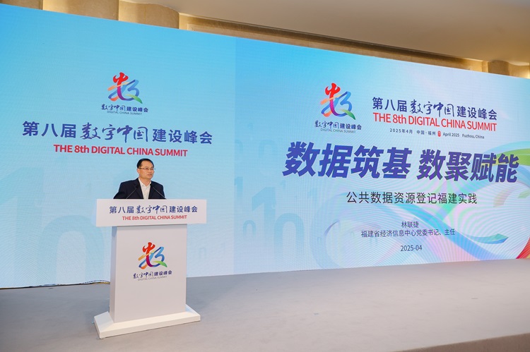 福建省經(jīng)濟(jì)信息中心黨委書記、主任林聯(lián)捷作“數(shù)據(jù)筑基 數(shù)聚賦能——公共數(shù)據(jù)資源登記福建實(shí)踐”演講。