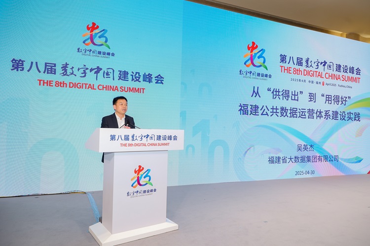 福建省大數(shù)據(jù)集團(tuán)黨委委員、副總經(jīng)理吳英杰作“從‘供得出’到‘用得好’:福建公共數(shù)據(jù)運(yùn)營(yíng)體系建設(shè)實(shí)踐”演講。