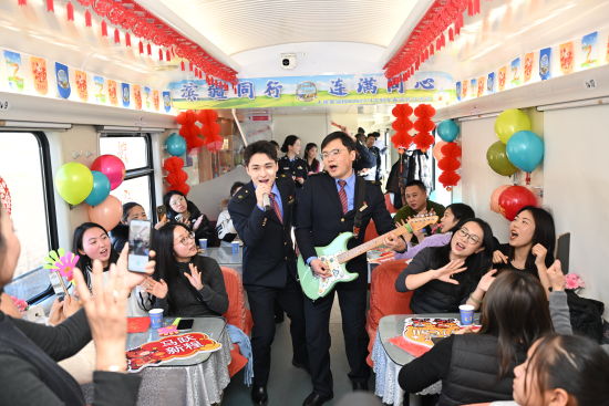 文藝表演環(huán)節(jié)精彩迭出,為旅途注入鮮活氣息。一曲《美麗家園》唱出游子對故鄉(xiāng)的深情眷戀,喚起旅客心中共同的團圓情結(jié);舞蹈《草原花正開》以舒展的舞姿、明快的節(jié)奏,勾勒出草原的遼闊生機,仿佛提前帶來春的氣息;二胡獨奏《賽馬》激昂奔放,弦音如蹄,奏響新春的蓬勃朝氣,引來陣陣掌聲;《烏蘭巴托的夜》深情悠遠,撫慰旅途思念,增添一抹詩意的溫暖;最后的器樂彈唱《奔跑》以熟悉旋律點燃全場,傳遞出向前奮進的青春力量。