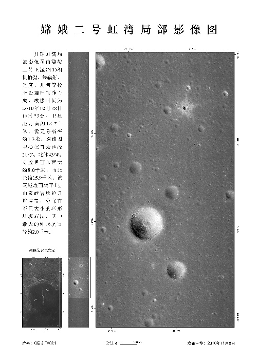 北京,2010年11月8日 國家國防科技工業(yè)局首次發(fā)布嫦娥二號月面虹灣局部影像圖 這是嫦娥二號虹灣局部影像圖(成像時間為10月28日)。
