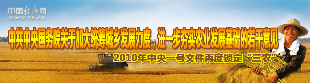 2010年中央一號文件以“加大統(tǒng)籌城鄉(xiāng)發(fā)展力度、進一步夯實農業(yè)農村發(fā)展基礎”為主題,充分體現(xiàn)了中央關于加強“三農”工作的一貫要求,指明了鞏固和發(fā)展農業(yè)農村經(jīng)濟好形勢的根本方向。